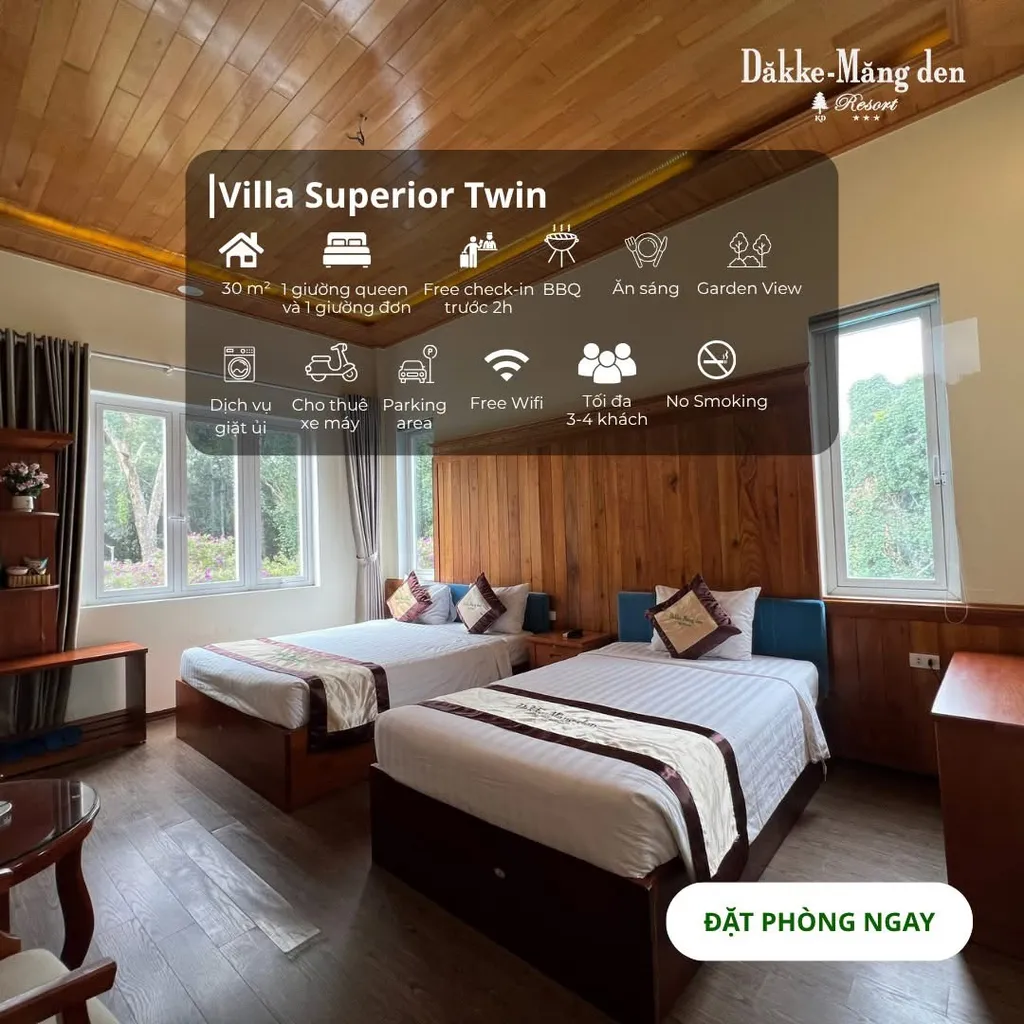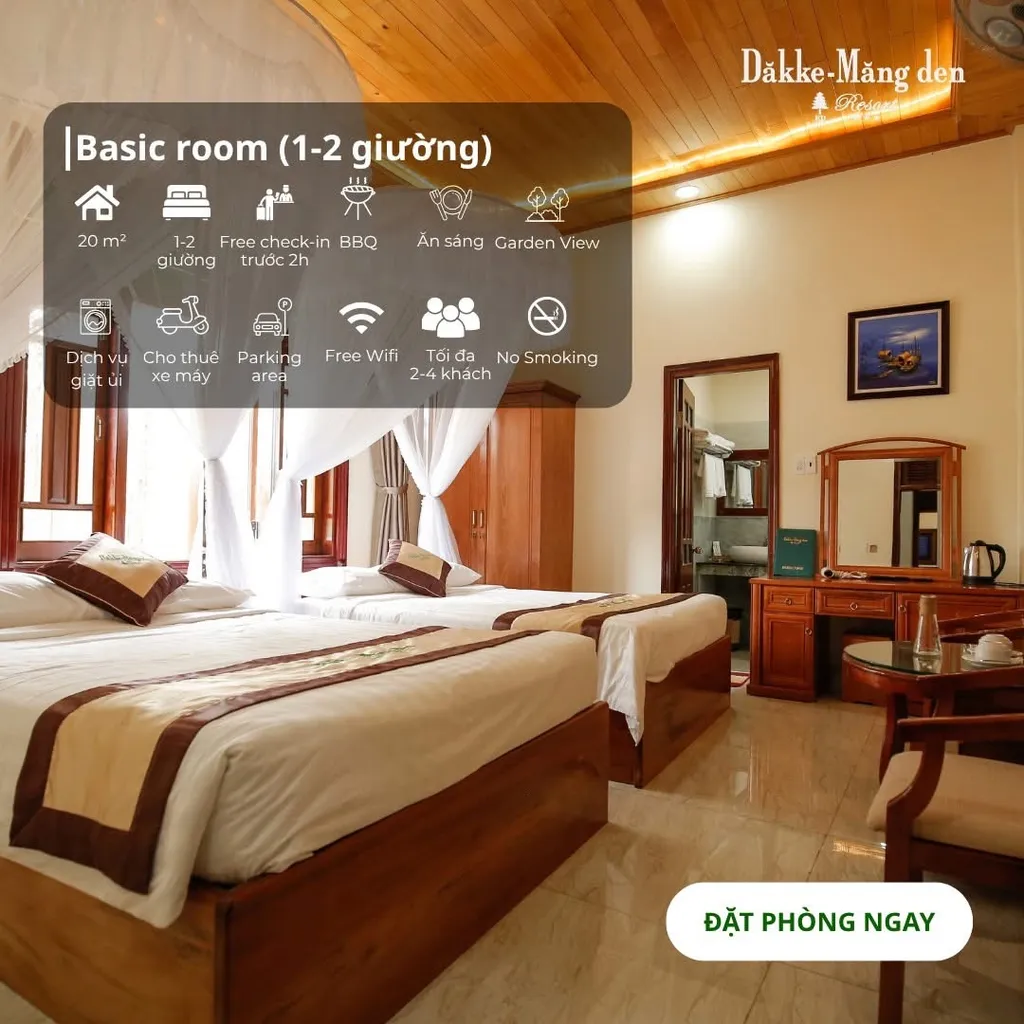 Dakke Mang Den Resort hợp với người đang tìm một resort Măng Đen view đẹp mà vẫn dễ đi, dễ ở và dễ ghép lịch trình. So với nhiều home nhỏ, Dakke thiên về cảm giác chắc tay: có nhà hàng, chỗ đậu xe, bữa sáng, BBQ và nhiều kiểu phòng hơn.