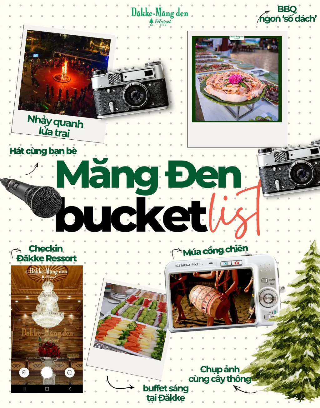 Ngoài ra, những ảnh dạng poster trải nghiệm mà resort dùng cũng cho thấy họ đang nhấn vào nhóm hoạt động như BBQ, họp mặt gia đình, buổi tối, doanh nghiệp nhỏ. Tức là bài review nên nhìn Dakke như một nơi ở có thể đi theo nhiều “mục đích ở”, chứ không chỉ là chỗ ngủ.