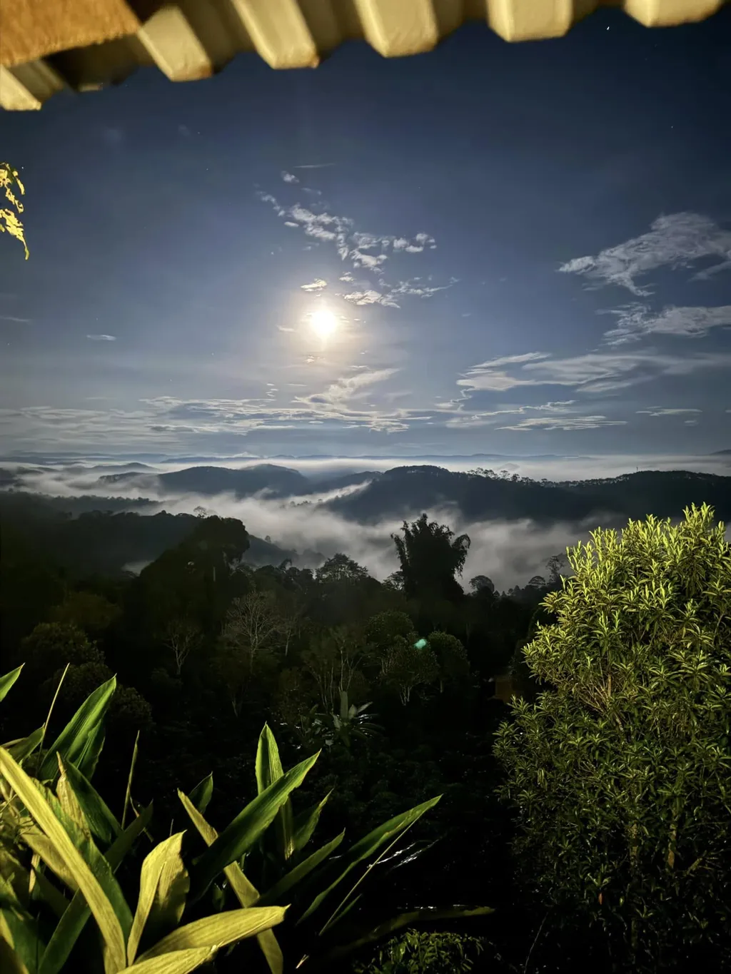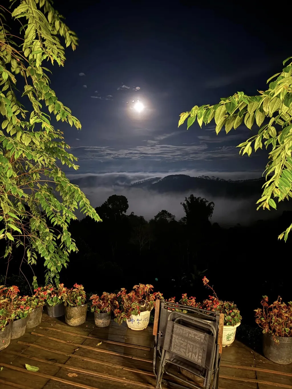 Điểm đáng giá nữa là view ở đây không chỉ đẹp vào sáng. Ảnh đêm có trăng, có mây và lớp cây tối phía trước tạo cảm giác rất khác so với kiểu săn mây chụp một phát rồi đi. Nó hợp với người thích ở lại lâu, nhìn thời tiết đổi màu, nghe không khí đổi nhịp. Chính yếu tố đó làm T’Rưng hợp với các cặp đôi và những người cần một chuyến nghỉ chậm hơn là chỉ ghé lấy ảnh.